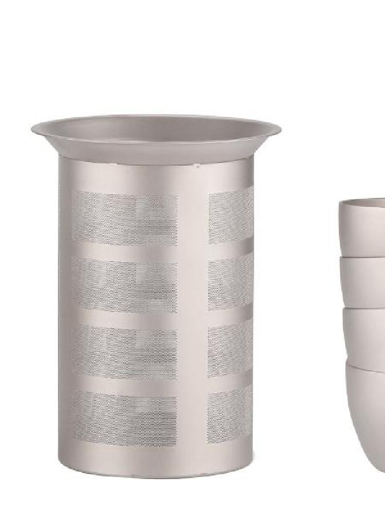 这是一款多功能泡茶器,既可用作水杯,也可泡茶,用轻盈健康的纯钛材质打造,亲和人体,高温无有害析出;为了达到更好的保温效果,杯盖采用了纯钛材质;简洁的设计和优质的选材充满了美感和质感。
