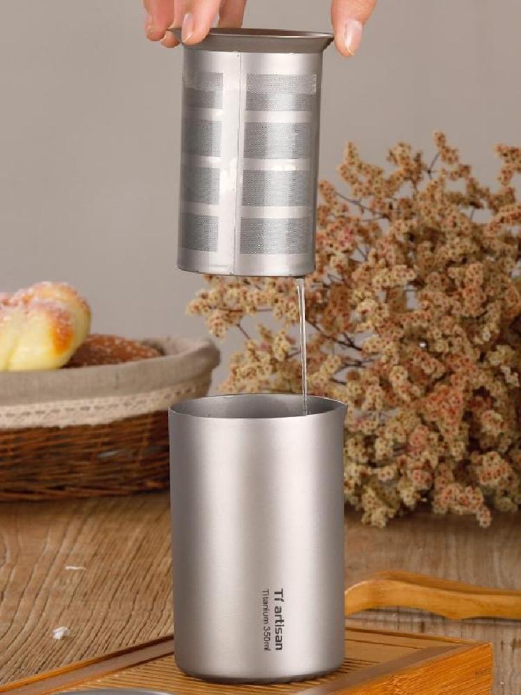这是一款多功能泡茶器,既可用作水杯,也可泡茶,用轻盈健康的纯钛材质打造,亲和人体,高温无有害析出。