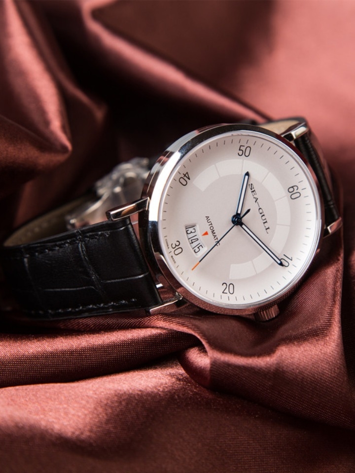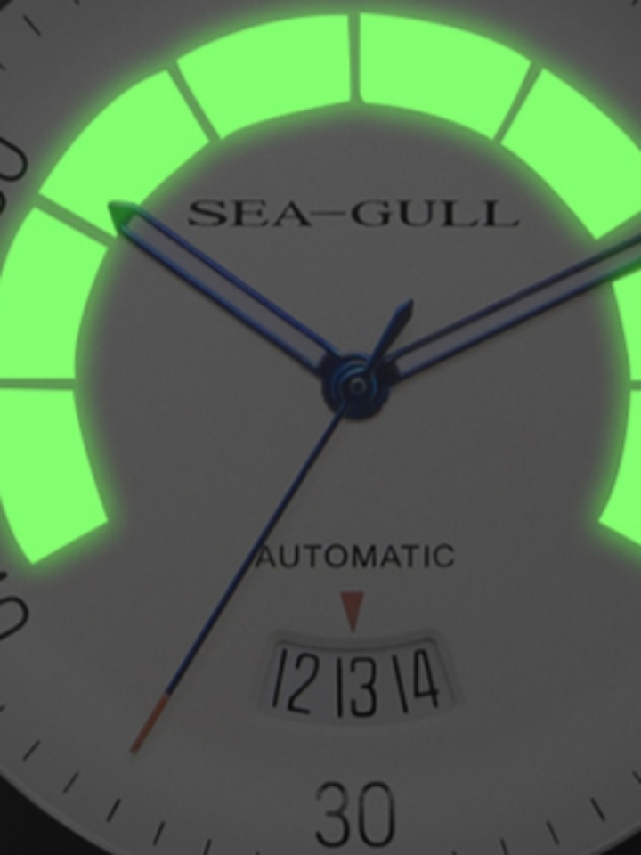 海鸥ST21标准版机芯,26钻,震频28800,搭载日常日历功能,上满弦后,依靠手臂的自然摆动,带动机芯内部摆陀继续上弦,省去每日对时烦恼,坚实牢靠的内部构造,五大擒纵机构相互支撑,高摆频、低误差,高效动力存储,走时稳定可靠。