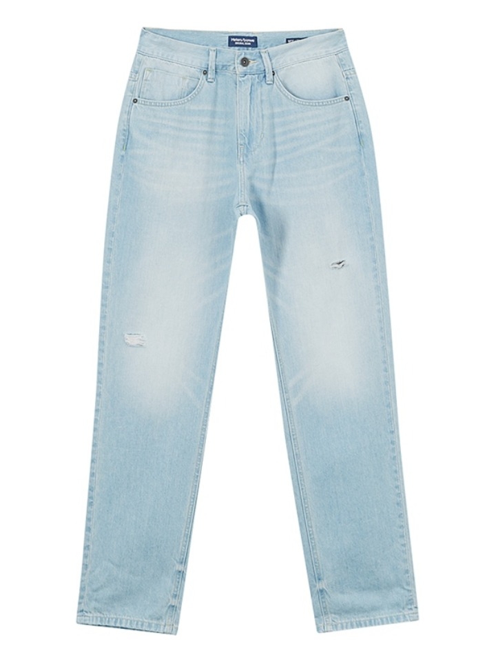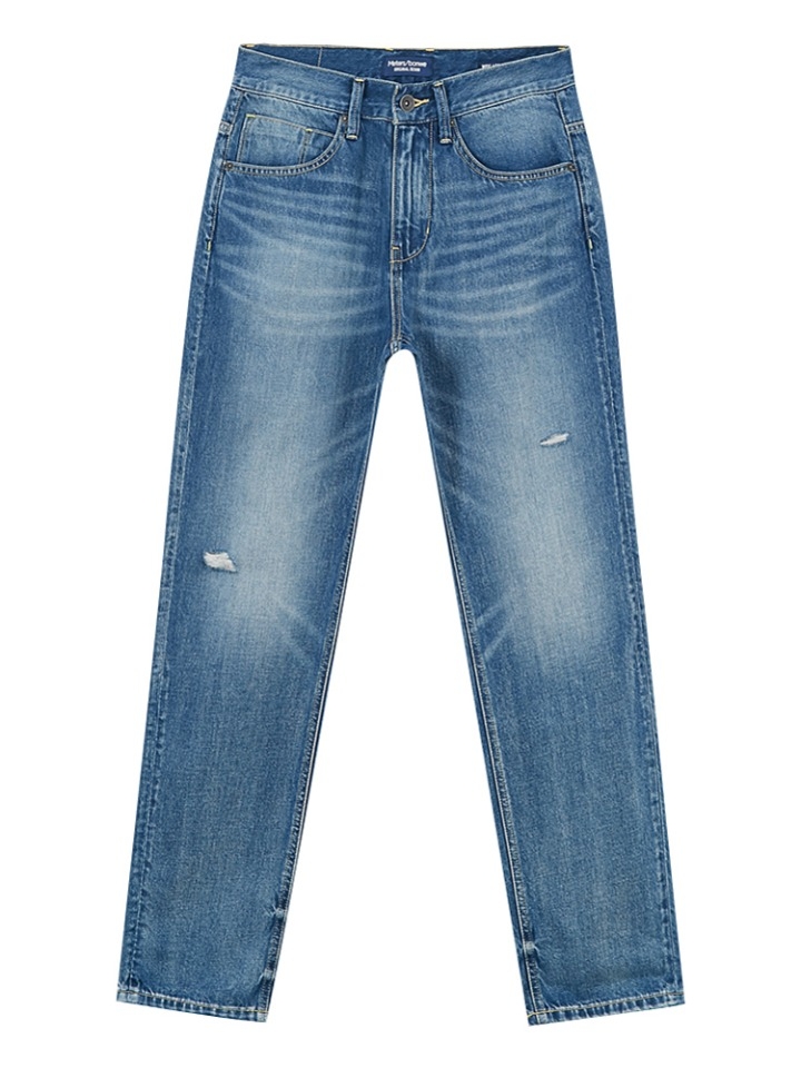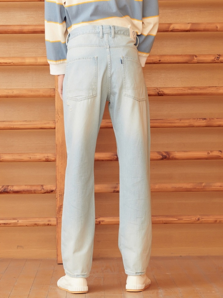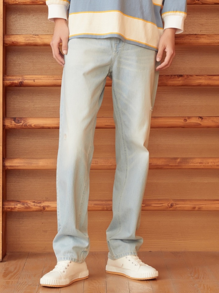 这款男士牛仔裤采用宽松直筒的版型设计,上身穿着舒适不紧绷,整体裤身呈猫须磨毛效果,为其增添复古感,精湛的做工,线条细腻规整,将男性的青春时尚气质展现得淋漓尽致。