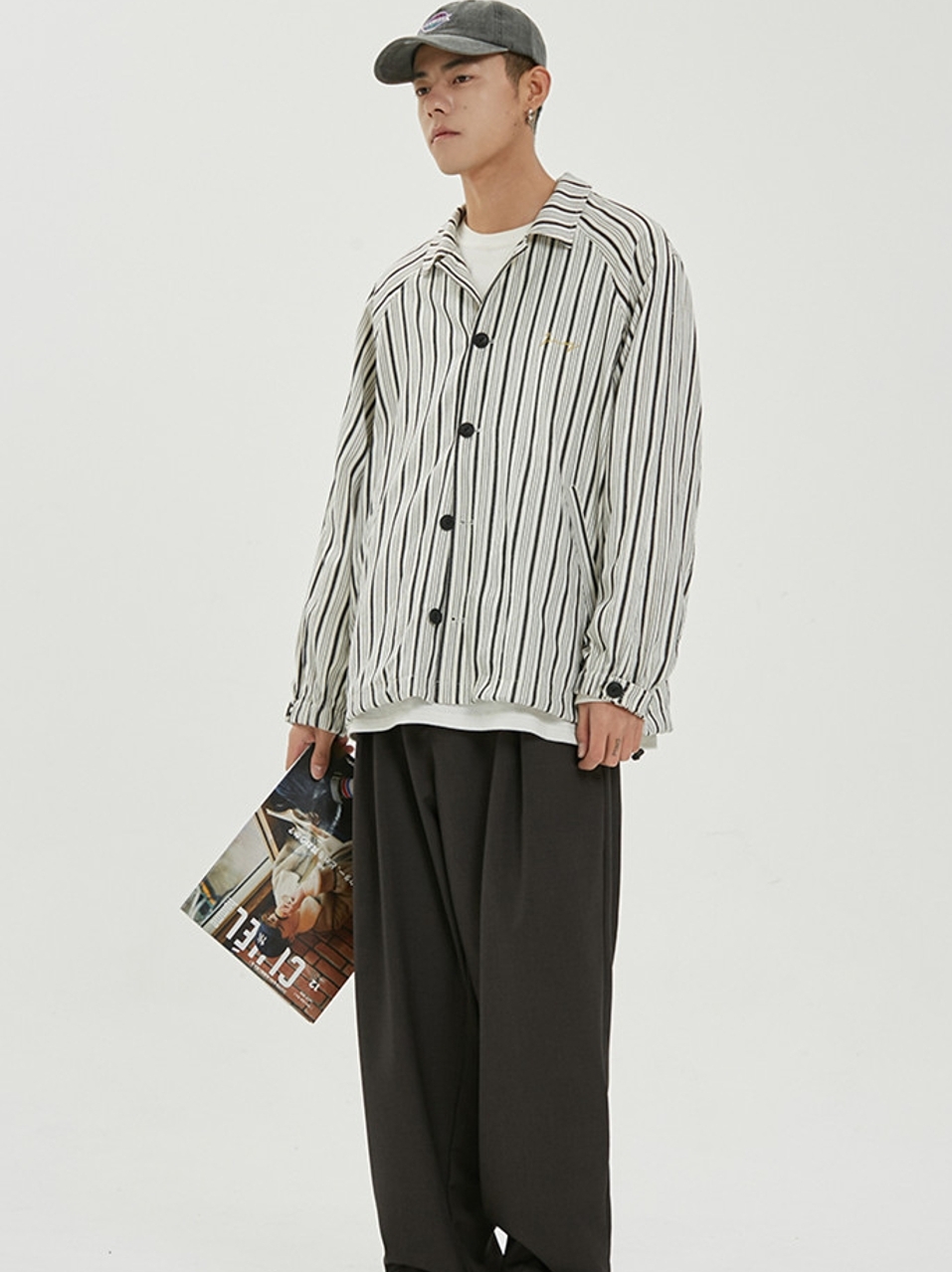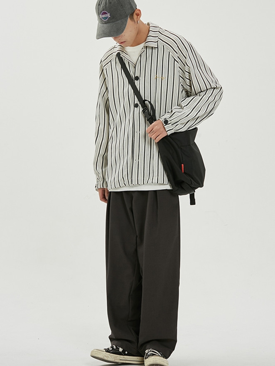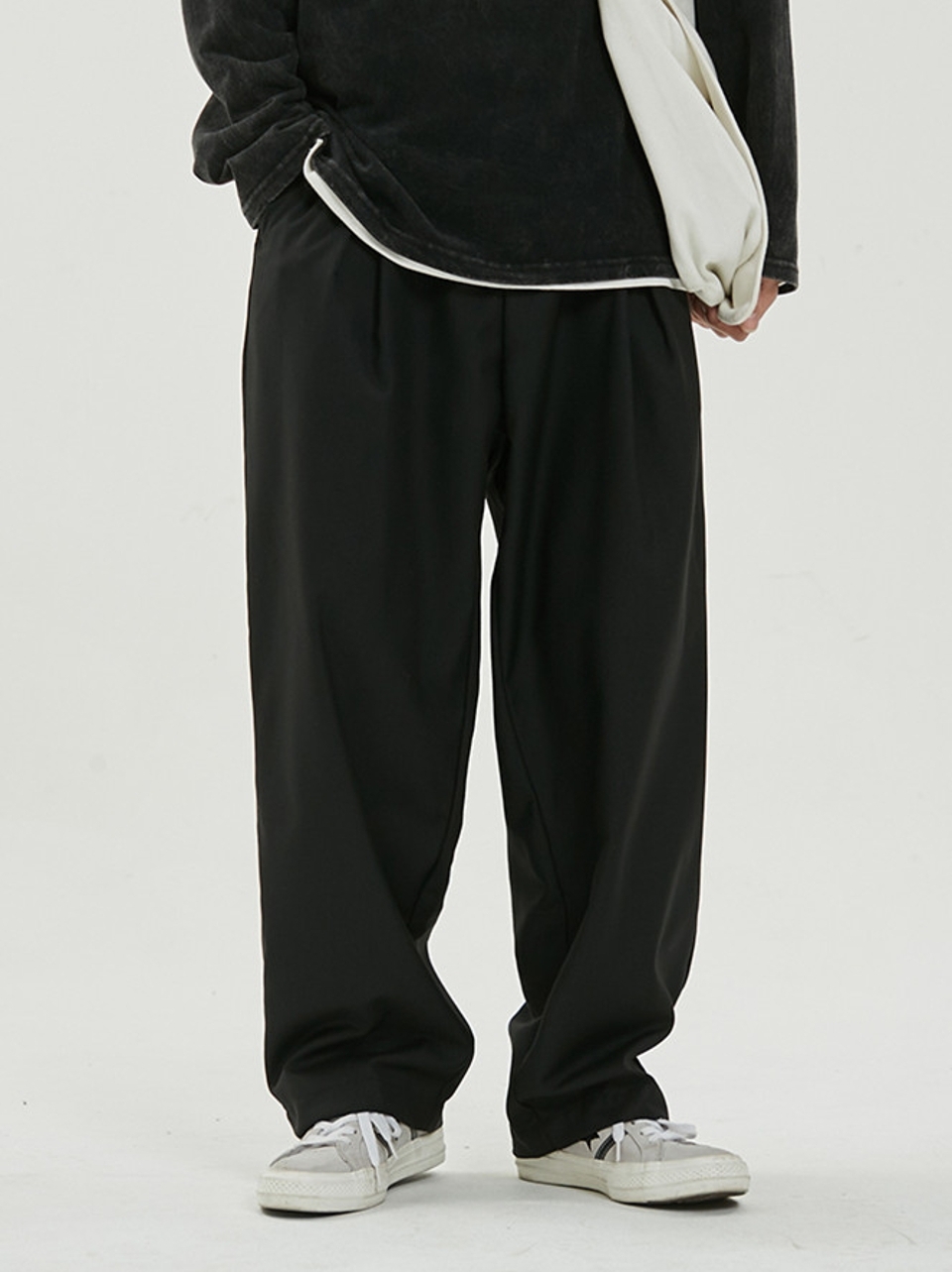 时尚的一款休闲直筒裤,穿着利落不拖沓,可以搭配一款白色的短袖T恤衫,拉伸脖颈的修长,尽显帅气精致的脸型,脚穿一款浅口板鞋,轻松出街。