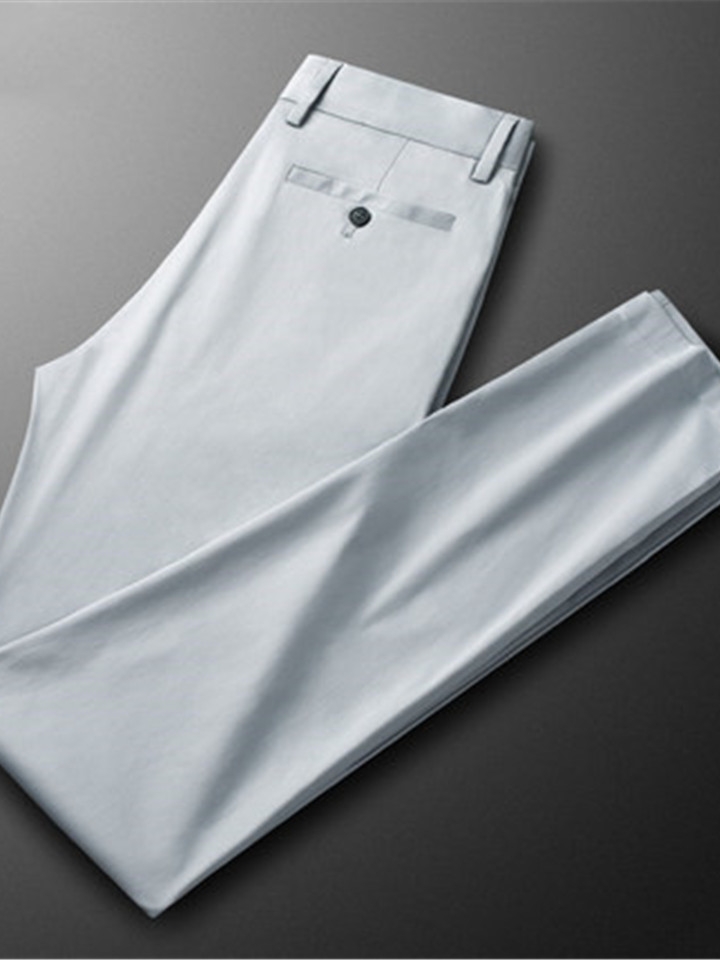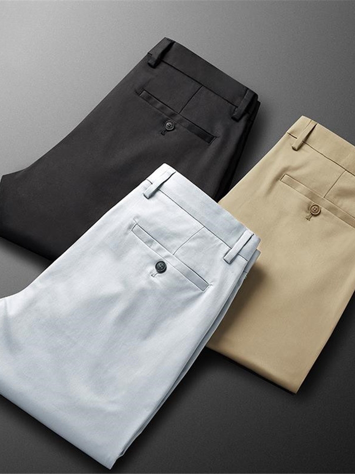 冰丝材质打造,触感轻薄顺滑,穿着起来耐磨抗皱易打理。直筒的款式,休闲的同时也十分的时尚,既能在商务场合穿出属于自己的味道,体现出自己的高端品位。