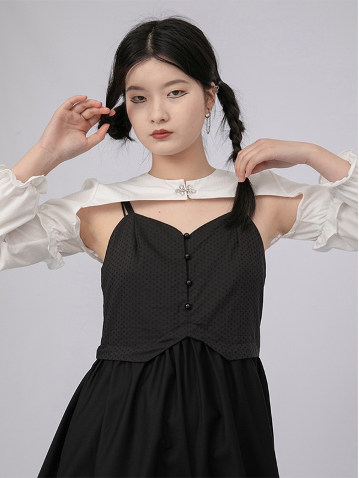 一件复古与甜美并存的上衣,单穿内搭都很出彩~吊带的设计恰当好处的裸露肌肤,凸显骨感之美,非常有女人味;袖子做成了宽松的荷叶堆袖,十分精巧,举手投足间尽显俏皮可爱,是减龄的法宝喔!软滑细腻有质感的面料,垂坠感满分,扑在皮肤上清凉又舒服,因其甜美又仙气尤其受到各方宠爱。双层荷叶的造型增加了层次感。宽大的版型,无论是胖是瘦的体型都能穿得好看。万年受用百搭款。