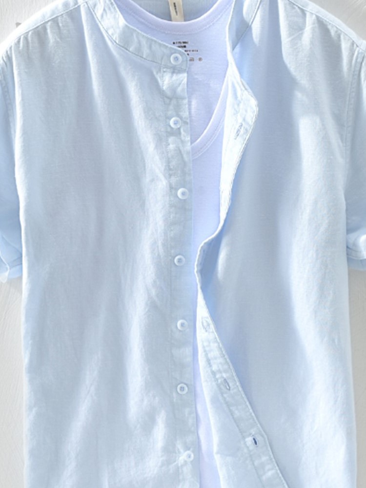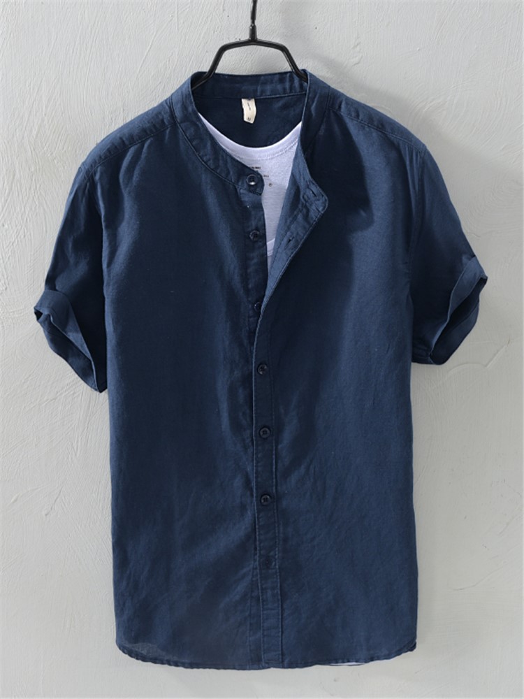 衬衫采用优质面料,柔软舒适,亲肤透气,穿着舒适经典的立领设计,简约大方,穿着舒适简约的纯色设计,时尚百搭,彰显男士的干练气质。