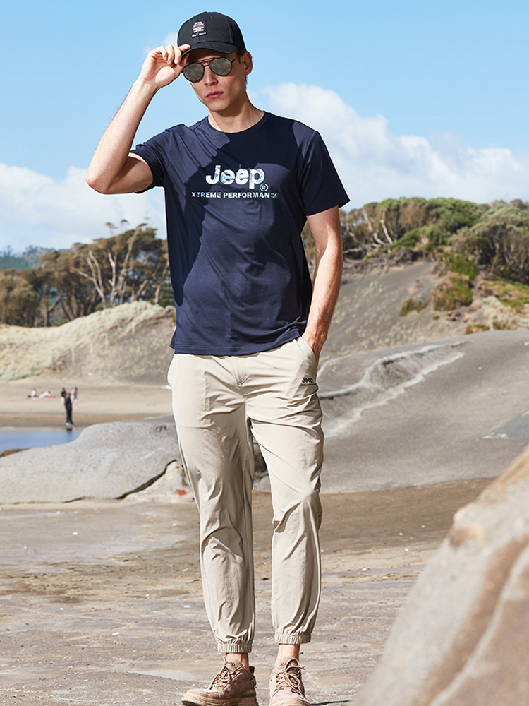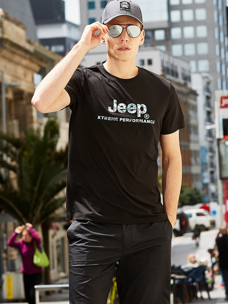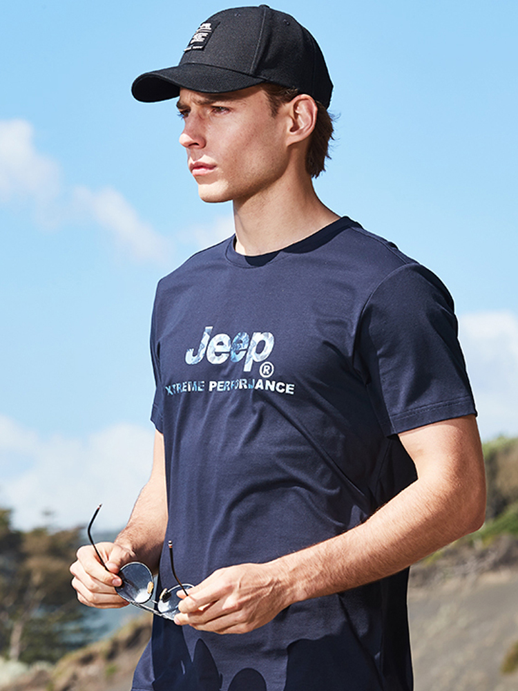 吉普男士休闲时尚短袖T恤,简洁圆领设计,显示男士优雅自信。