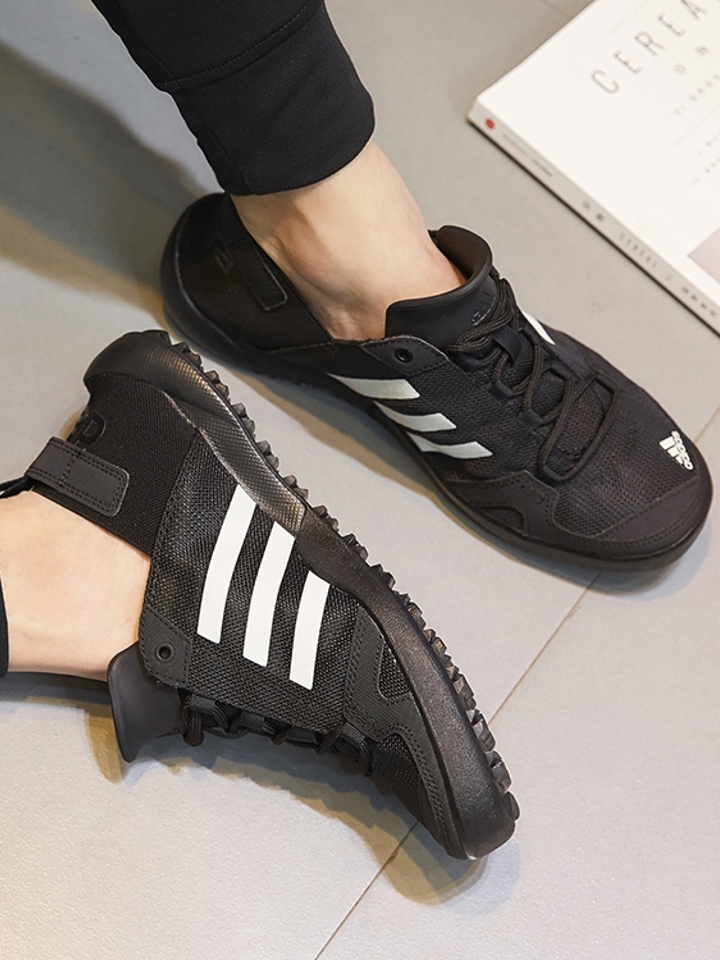 镂空网面设计,轻便透气,鞋面采用双层速干网布,两侧带有自动排水孔,排水性能优越,鞋内特制的防砂网