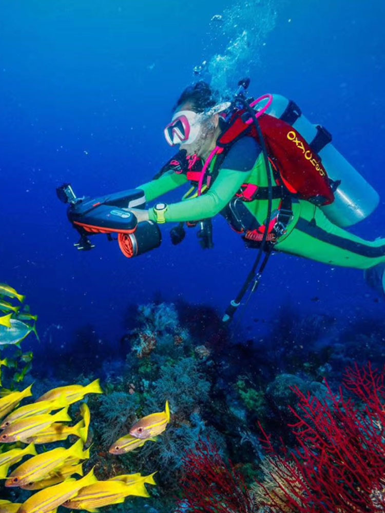 此款水下推进器,采用高能量密度电池,以及优化桨、机配合设计加持提高输出效率,正常使用时间长达75分钟,让水下的体验与探索不因时间的不足而走马观花,错失旖旎。