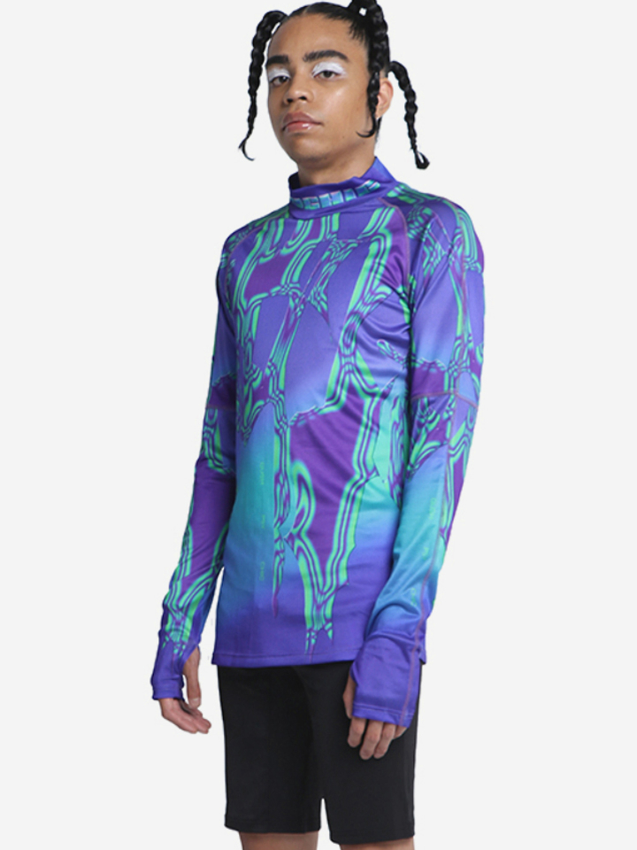 以靓丽的蓝紫色为主调,极具时尚气息,辅以高领紧身的设计,更加符合打底衫的百搭性,轻松塑造潮流的风格。