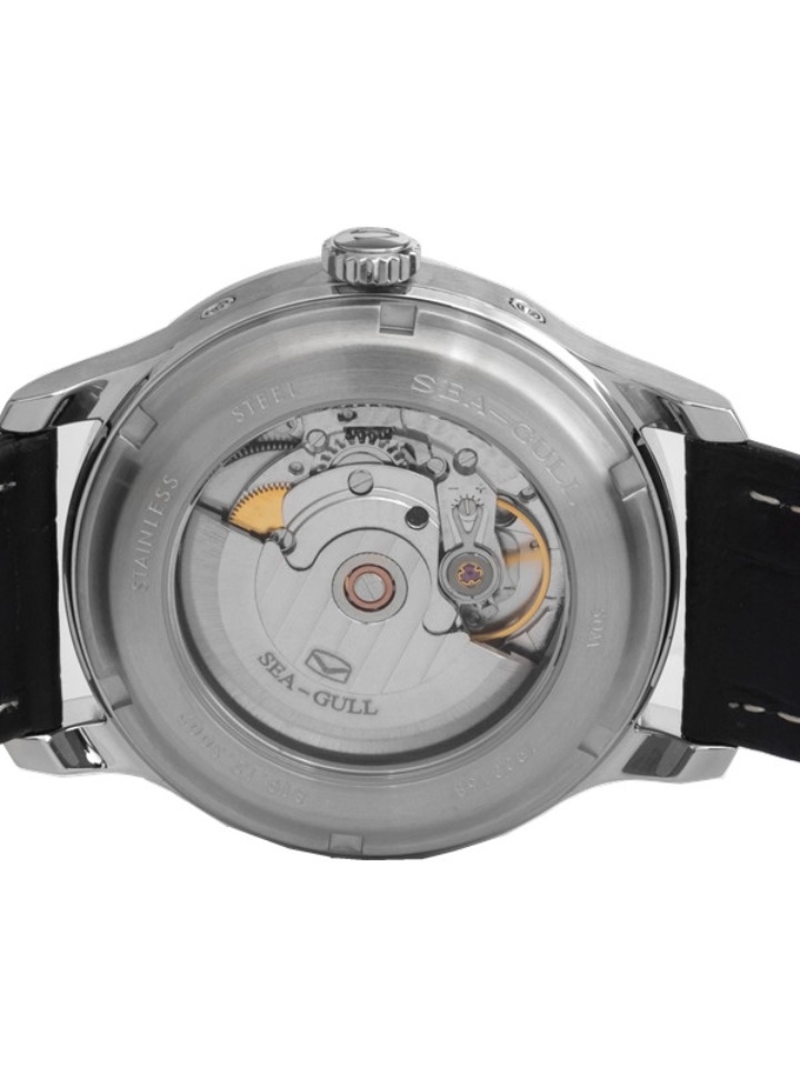 表盘简洁利落有型,做工细致典雅,散发出众的迷人魅力,合成蓝宝石表镜,材质滴水成珠历久弥新,经典而不乏时尚美感,表带没有繁杂的装饰,在举手投足之间绽放自我品味,背部刻字精雕细琢,体现海鸥对工艺的质感和追求。
