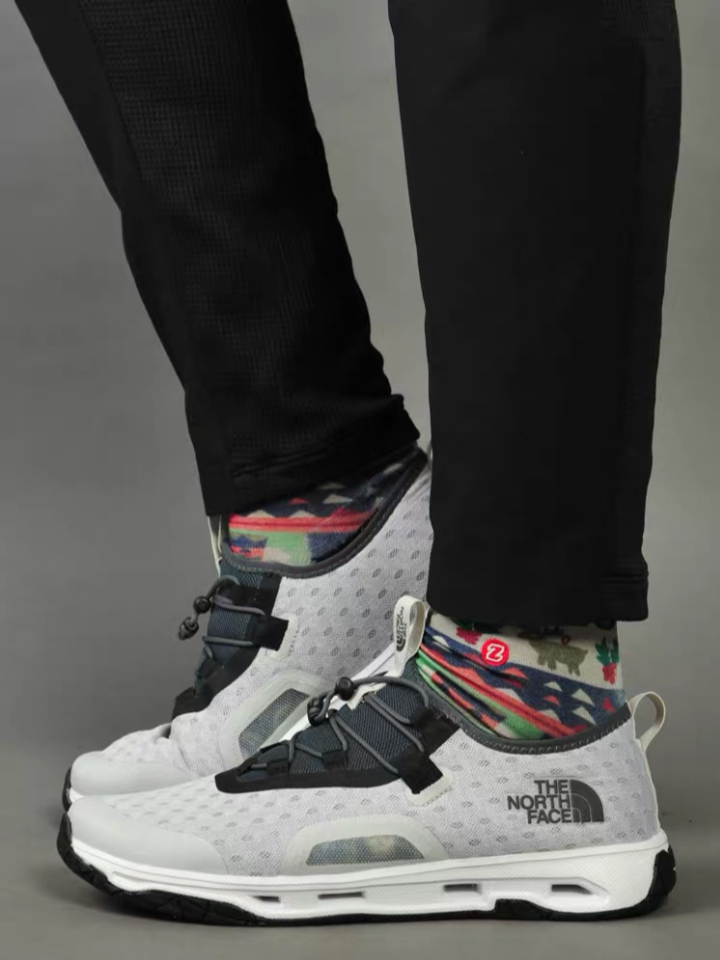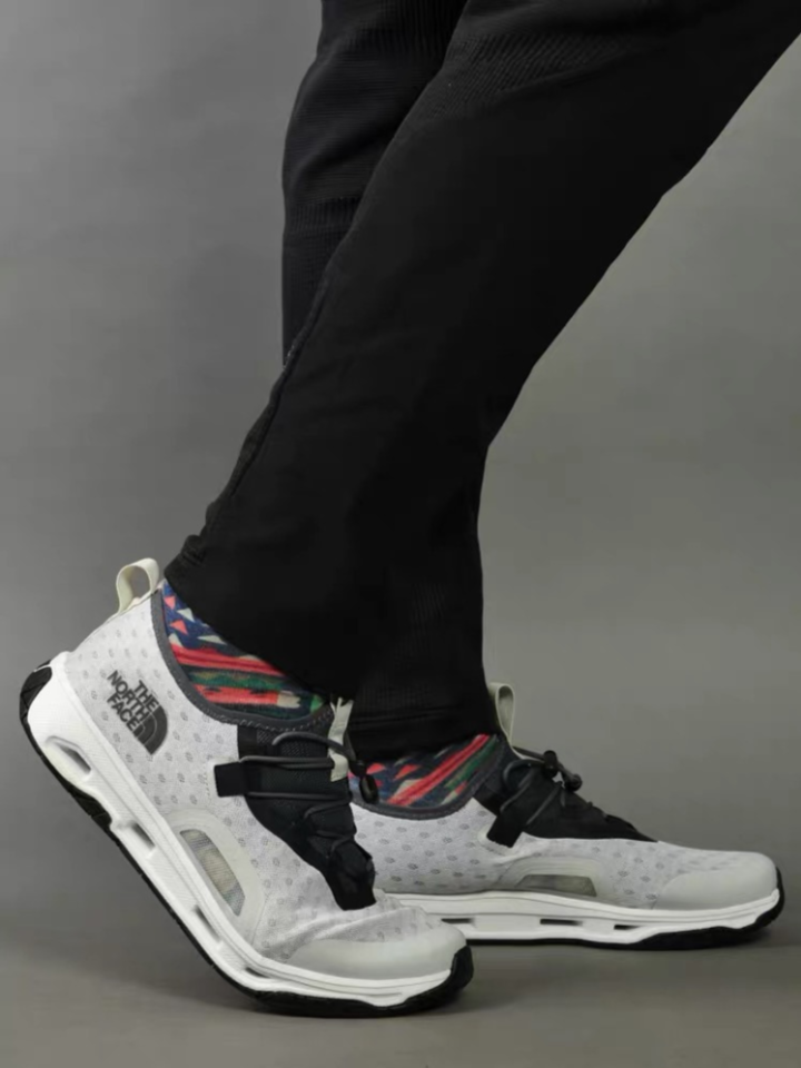 这是一款非常时尚百搭的溯溪鞋,上衣穿件Polo衫,下装穿条塑脚休闲裤,脚上踩这这双鞋子,看起来特别休闲自在,尽显型男气质且充满运动风。