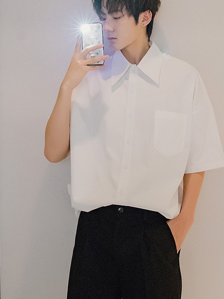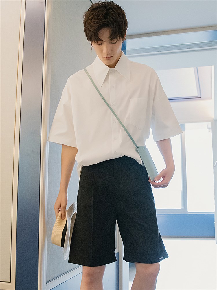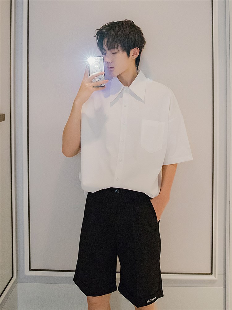 衬衫搭西裤,一言不合就撩妹,衬衫翻领,凸显干练气质。