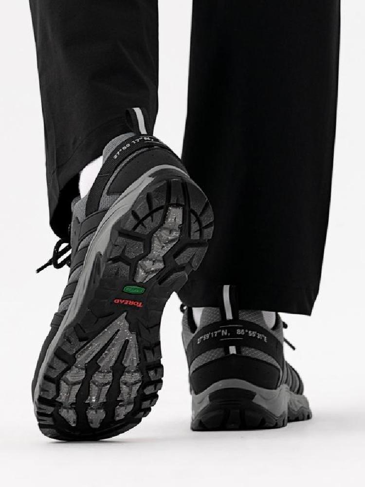 超耐磨科技的仿生徒步鞋鞋底,其耐磨性远超普通橡胶底30,前后掌3D止滑纹。后跟保护,模仿双手对脚面和和后跟的保护,T-TOE鞋头保护,防踢防撞脚趾,前后结合,释放双脚。