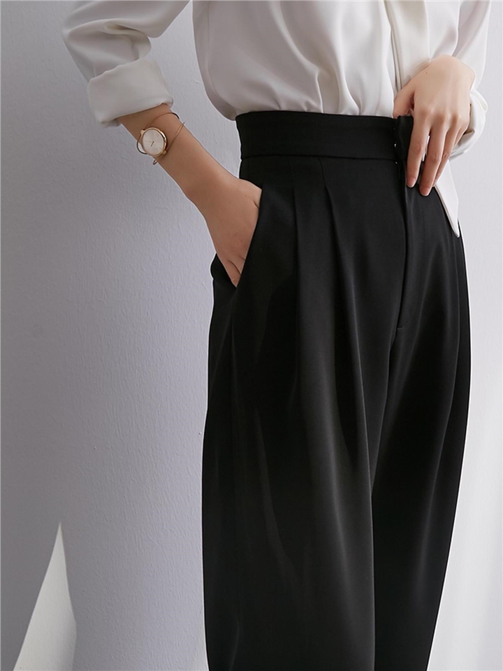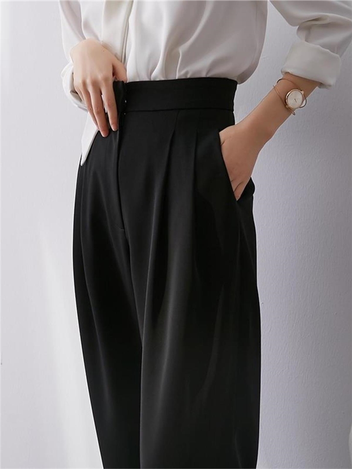 高腰的设计,拉长腿部线条,显瘦效果很好,高腰的版型,很显高挑,修身的剪裁,修饰腿部曲线,上身很有范。