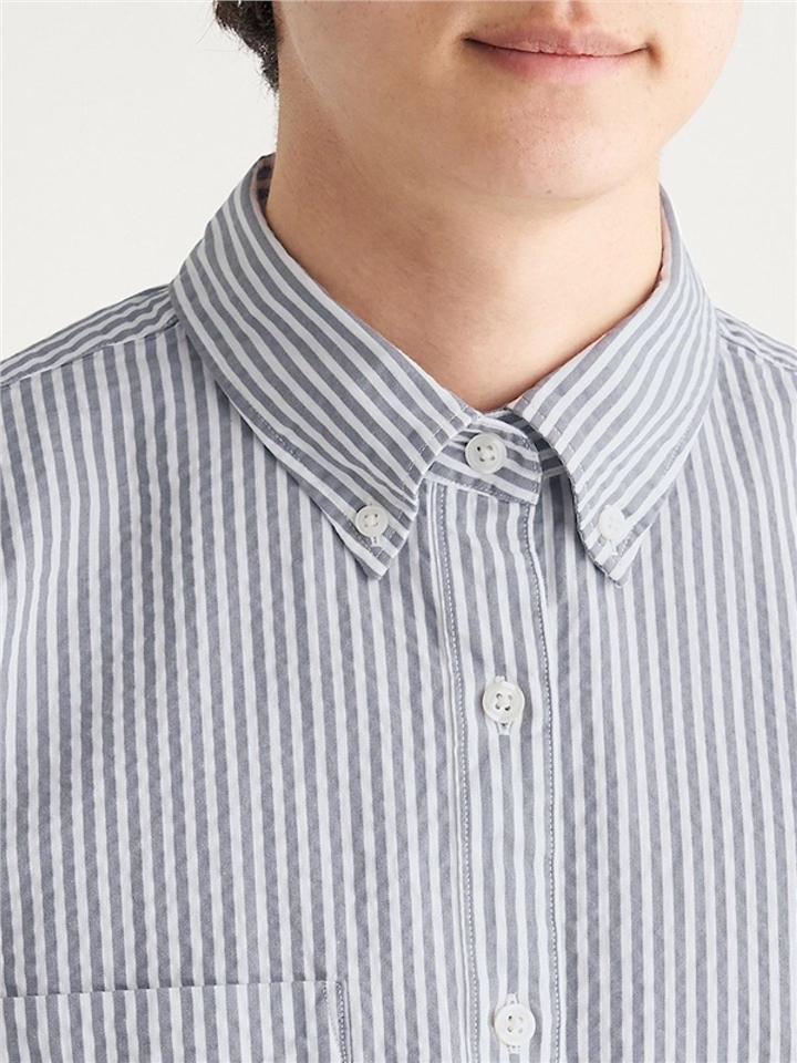 复古时尚的条纹设计,更是显得十分的有美感,又显得时尚十足。棉质的面料更是多了几分别致的美感,带着几分个性的味道,尽显高街时髦气质。