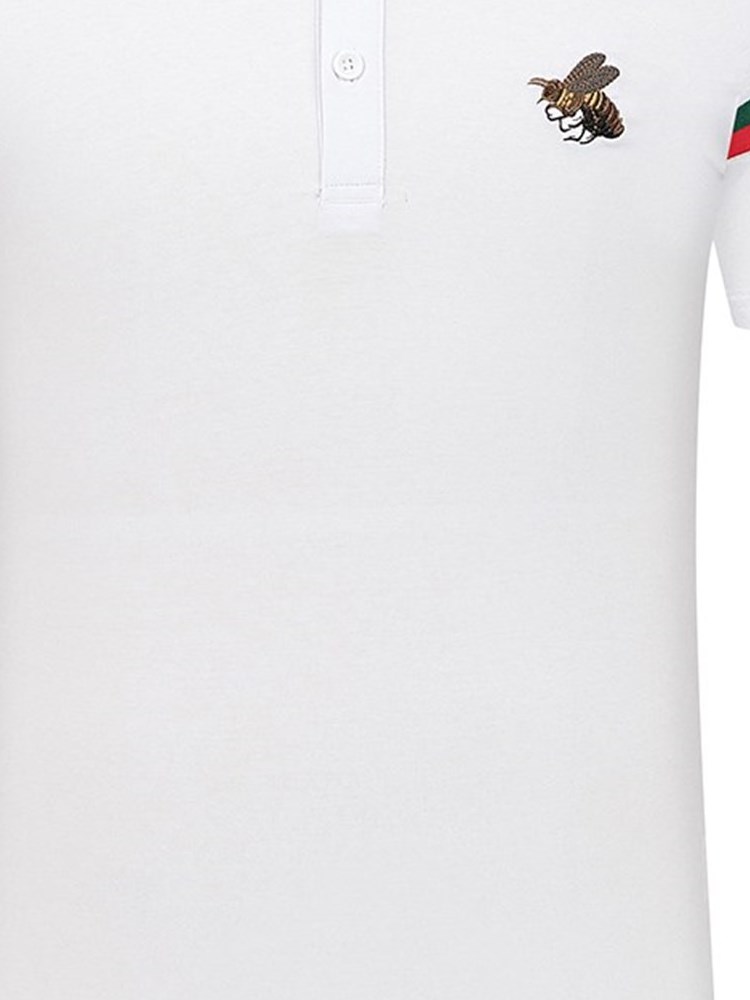 POLO衫采用了优质的丝光棉面料,穿着舒适透气,经典的翻领设计,简约大方,时尚百搭,胸前的刺绣图案,彰显时尚的潮流感,修身的版型,上身效果很好。