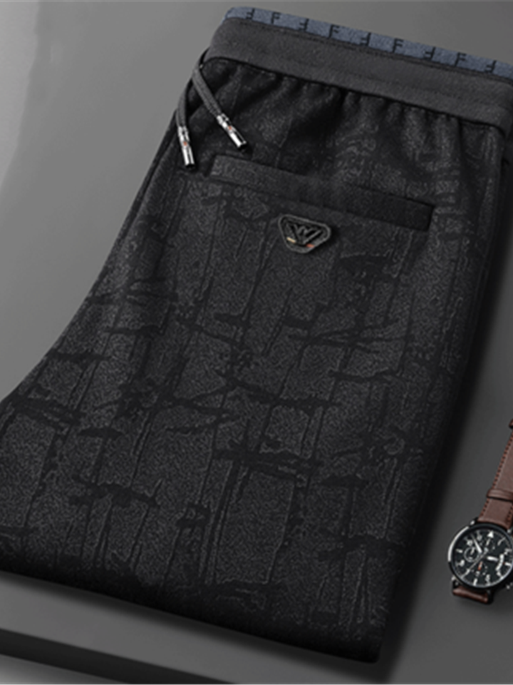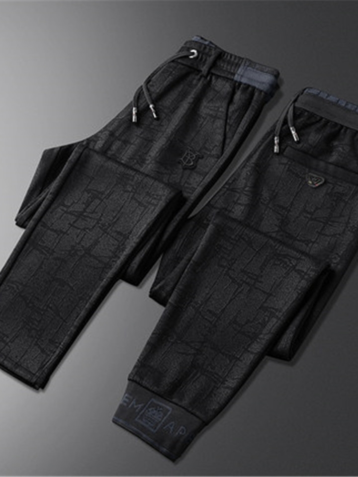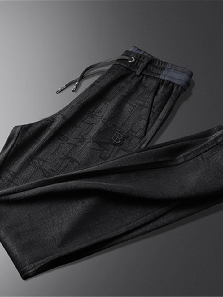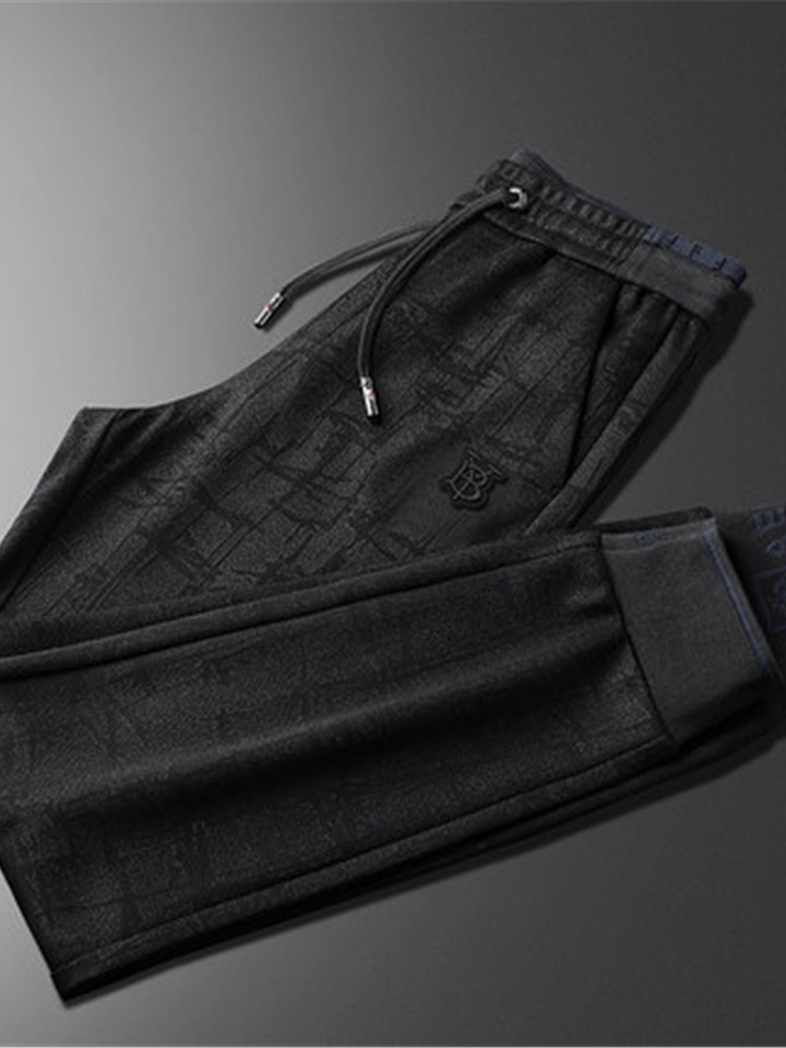 简约的运动休闲裤在黑色基调之上加入不规则同色图案,带来强烈的视觉效果,束脚的裤脚口显得干练利落,彰显休闲时尚。