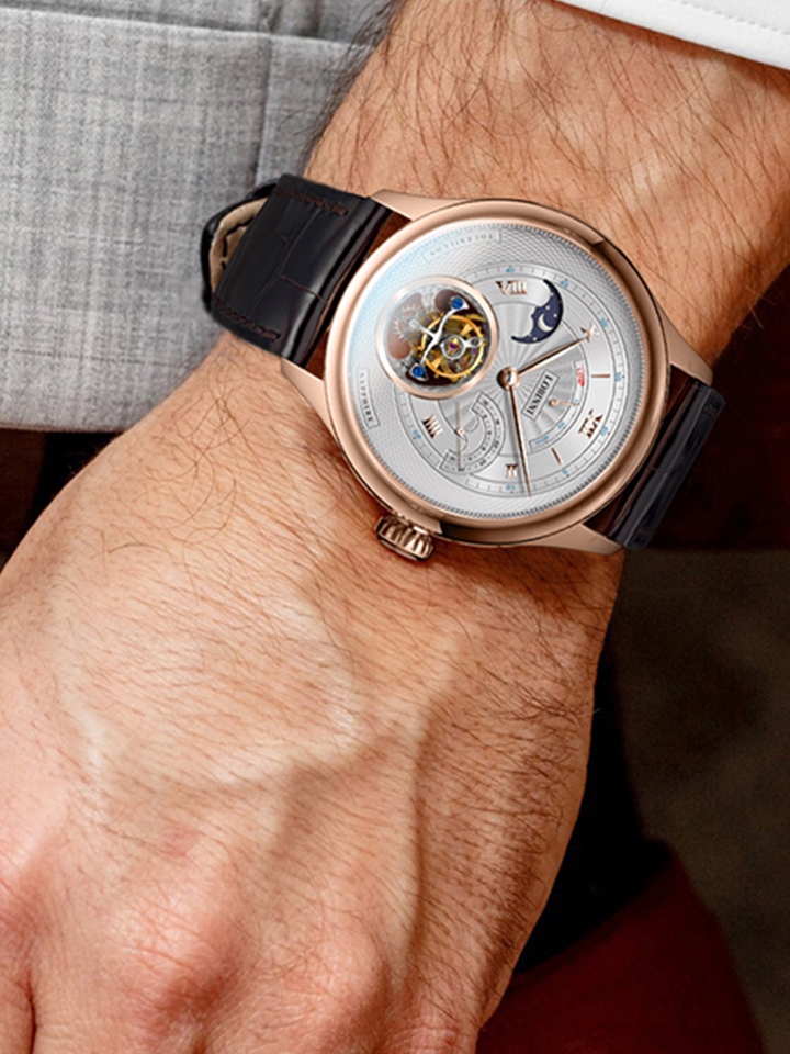 中国名牌手表,气质典雅的复杂机械表,走时稳定不停旋转的陀飞轮,凸显绅士妻子和,机械之美呼之欲出。