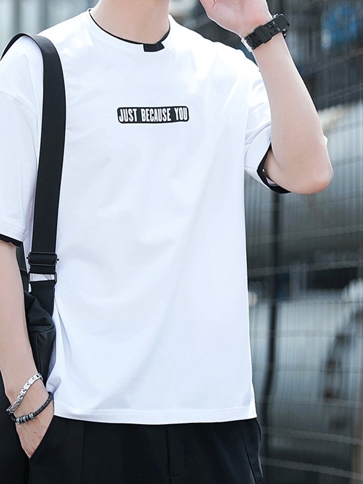 这款t恤是简约的风格,宽松的版型,时尚百搭,胸前的字母印花,很有个性,搭配牛仔裤或者短裤都很好看。