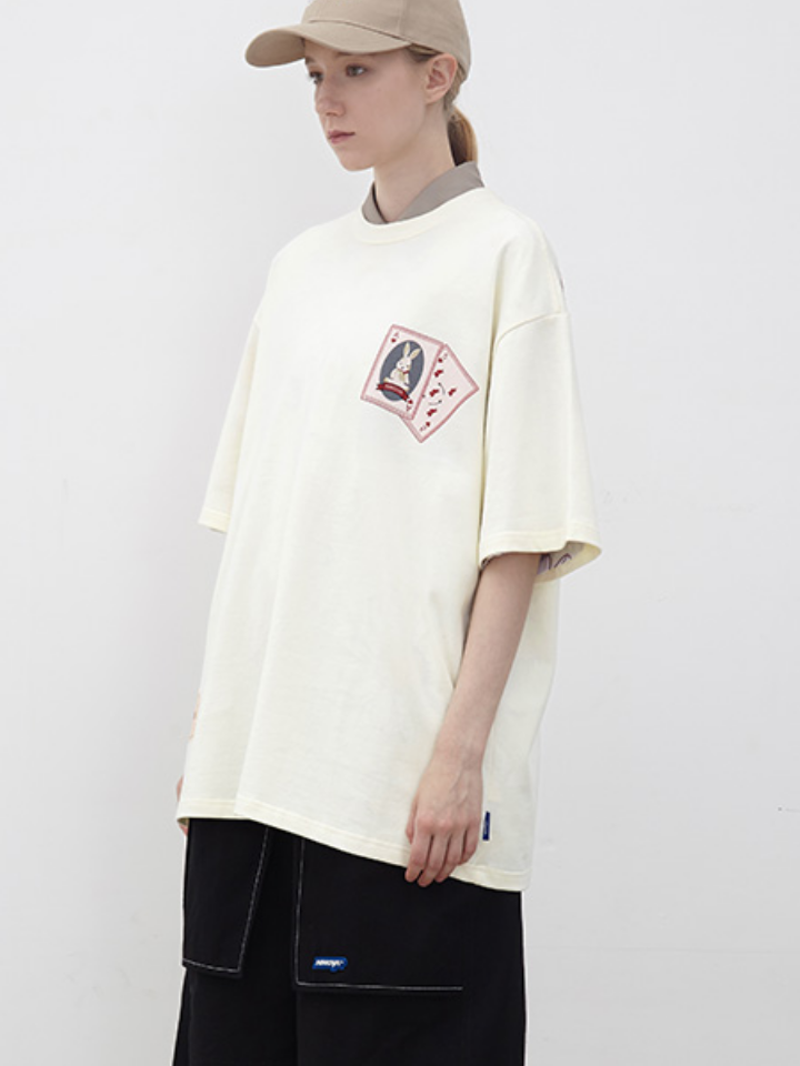 随意的印花T恤,街头风个性兔子印花装饰后背,经典的oversize宽松版型,叠穿其他单品更显时尚与个性。