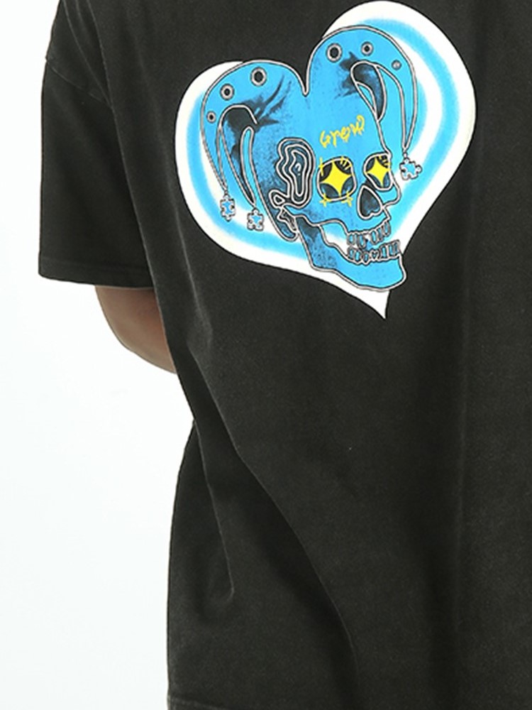 T恤采用了纯棉的面料,手感柔软,穿着舒适,胸前的骷髅印花图案,个性十足,个性十足,宽松的版型,穿着舒适自在,搭配牛仔裤或者短裤都很帅气。