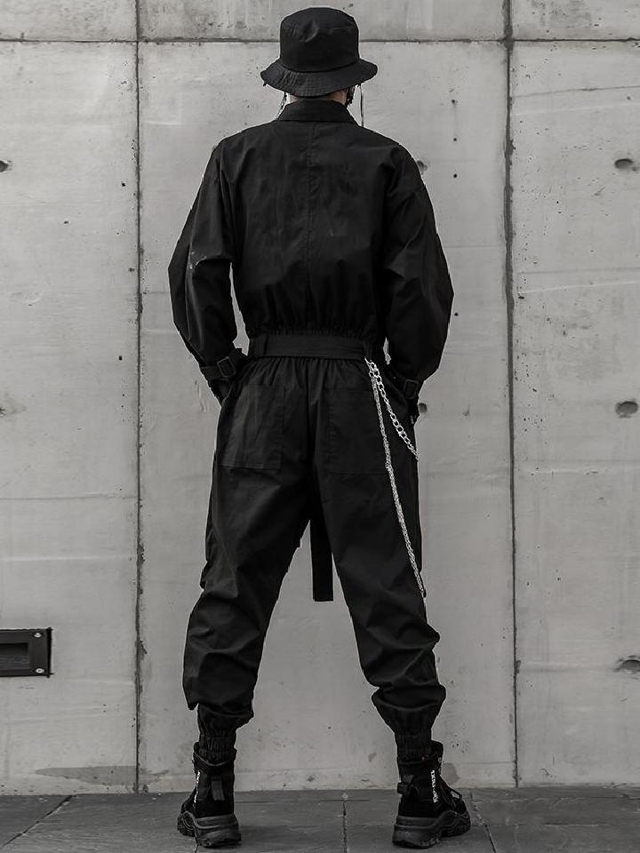 这款工装连体裤是宽松版型的,大多数身材都可以驾驭,结合和谐统一的深色色调,更有着一种简洁利落的感觉。