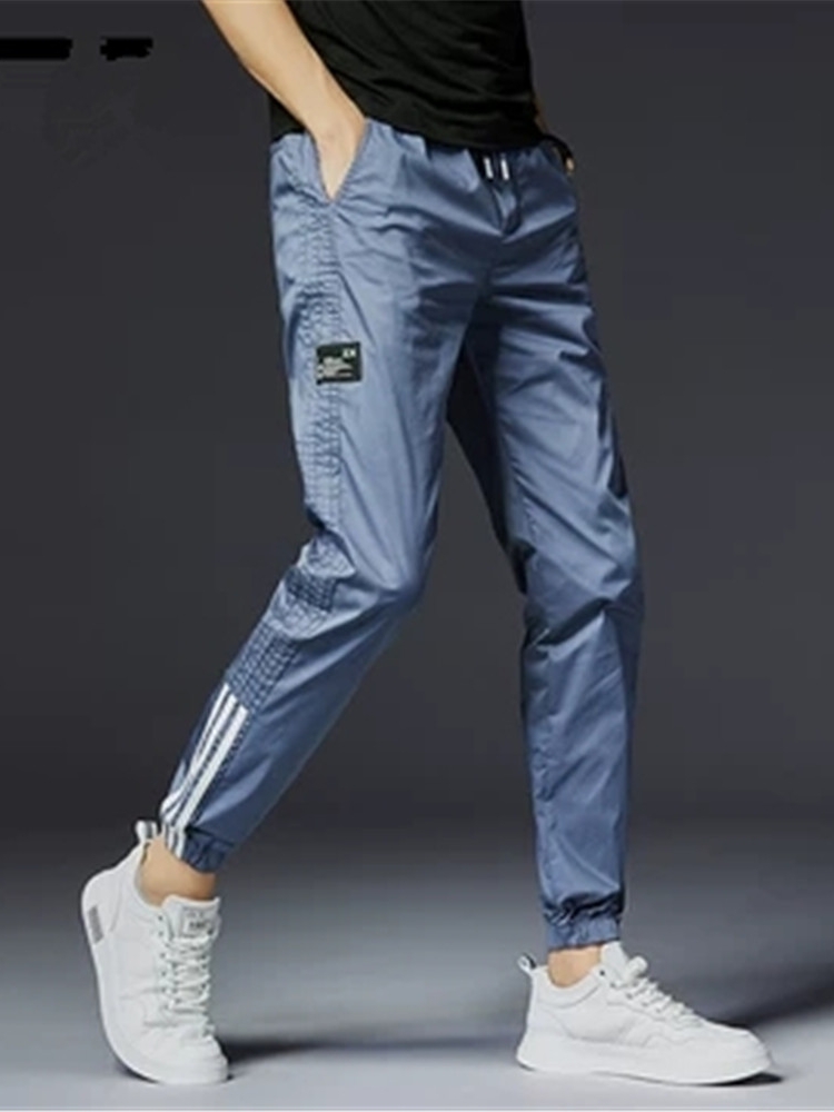 这款休闲裤采用100%冰丝面料制作,手感细腻顺滑,上身清爽透气,最适合夏季;松紧抽绳裤腰的设计,强调舒适自如的穿着体验,不挑人穿