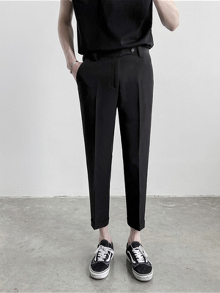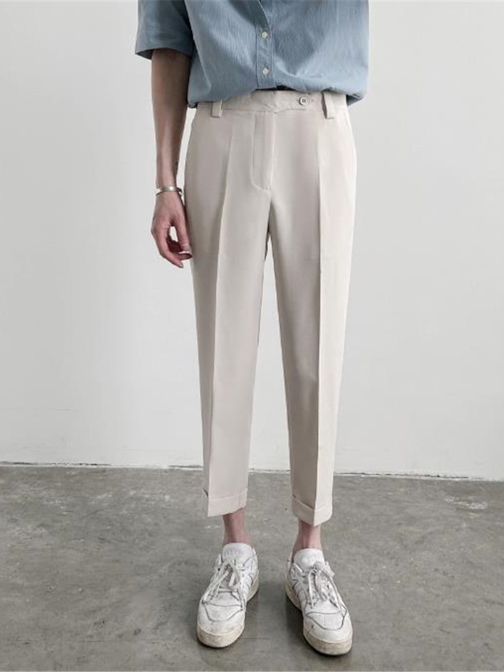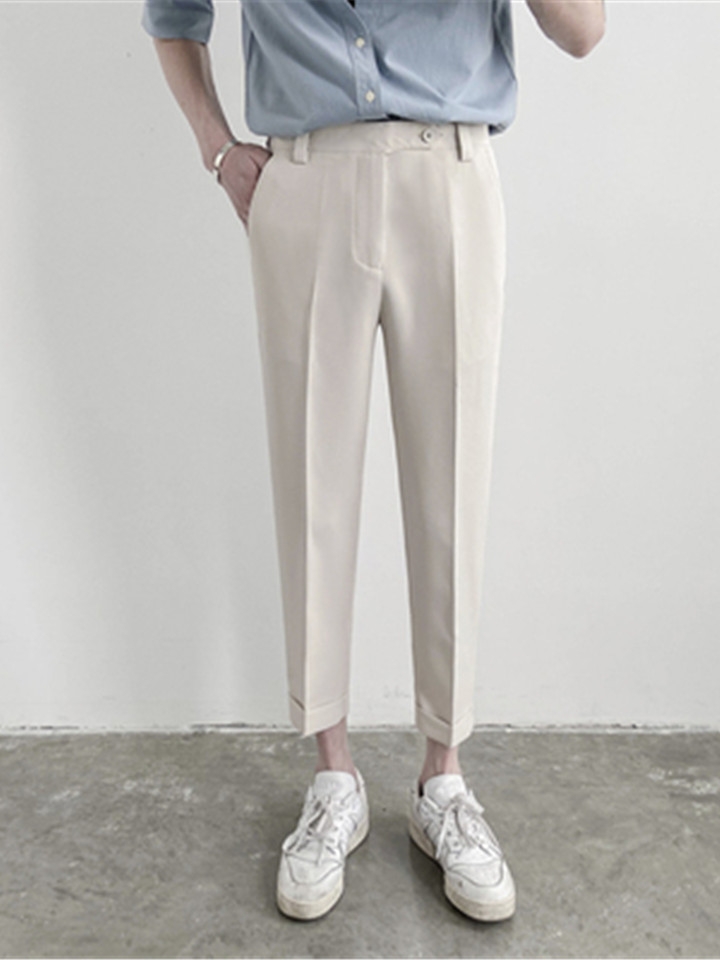 十分显型的一款修身小脚西装裤,尤其是小腿处非常的显瘦,更显裤型立体有质感。搭配休闲衬衫和一双小白鞋,让男人的经典气质显露无疑。