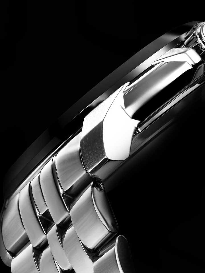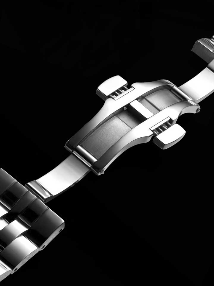 双边按置蝴蝶扣,双弹簧流畅开合,平衡手腕承受更舒适。不锈钢表带,精艺抛光,耐磨耐刮。