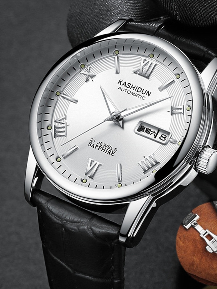 全自动机械商务手表,简约圆形表盘简洁大气,个性独立小秒针指示,个性时尚。两针还是有夜光指示,黑暗光线中也能读取时间,简便实用。