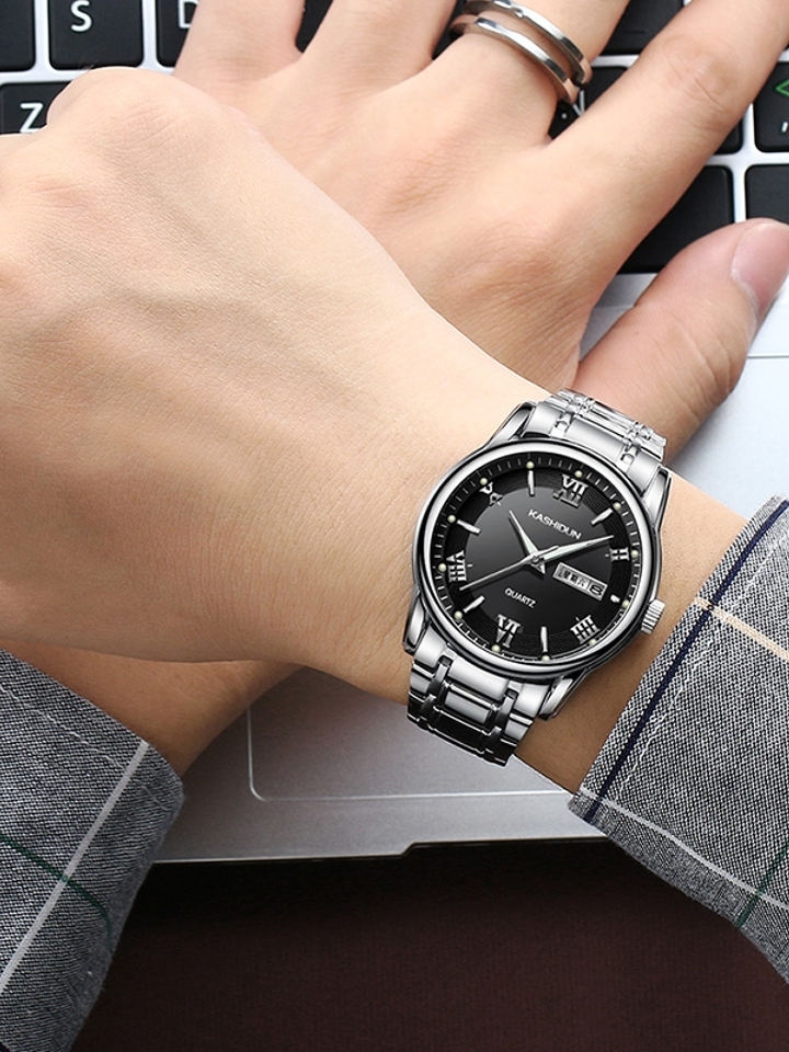 非常时尚典雅的一款男士机械表,来自卡诗顿的独家设计,镀膜玻璃镜面,精钢表壳和表带,尽显高级质感!