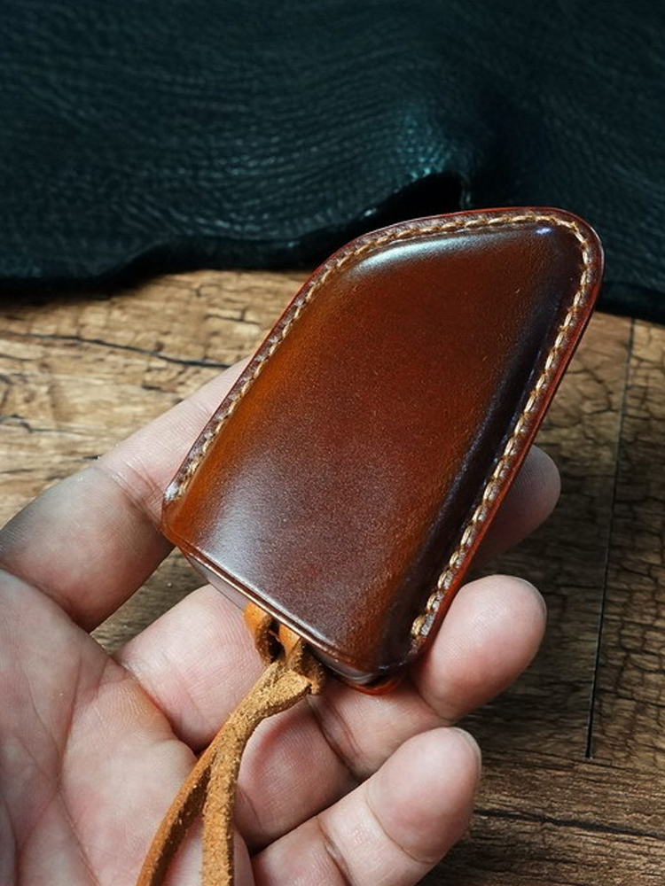 选料上,我就感觉出店家的用心。选用环保头马臀皮,色泽鲜艳,采用植物鞣剂鞣制,不含毒铭,对于人体健康没有危害,可以放心使用。环保皮料的质地细腻,手感柔软,又属于非金属!不会阻挡信号,可以说是非常好的制作车钥匙套的材料。在做工上也十分讲究,是原车开模,采用手工蜡线缝制,比机缝更牢固。