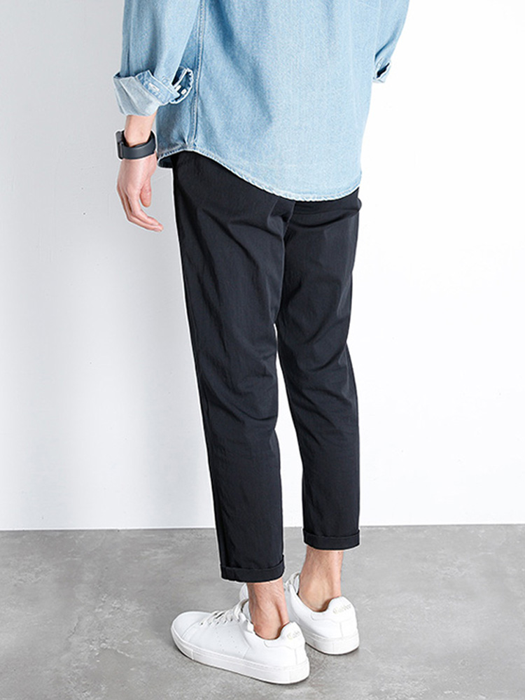 宽松直筒的版型设计,穿着休闲大方,舒适无束缚,带来出色的修饰腿部线条效果。而纯色的色系,打造出低调时尚的男性穿着态度,轻松包容各种穿搭。