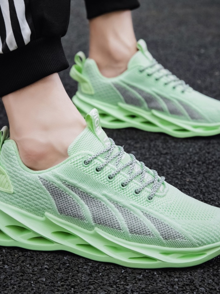 缓冲减震设计,柔软回弹,膝盖轻松无害,舒适透气,跑步更有劲。