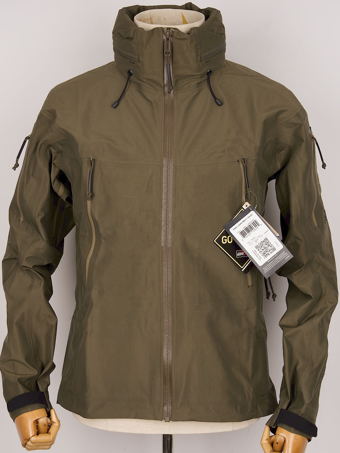 此款始祖鸟男款防风防水冲锋衣,拥有经典外型裁剪,衣长至下摆,采用四分之三长款外套,正面隐藏式拉链,配有防风片。翻领和立领都能以按扣闭合,两个带隐形拉链的大容积插手口袋,后背下摆独特裁剪设计。