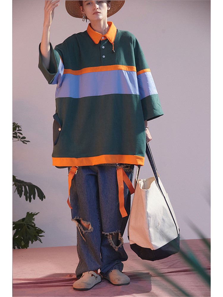一款个性色彩十分鲜明的短袖马球衫,以条纹衬衫占据主位,将个人独特气质彰显,复古的主调,带来强有力吸晴效果和养眼指数,富有趣味性和存在感,也为衣身造就立体层次感。