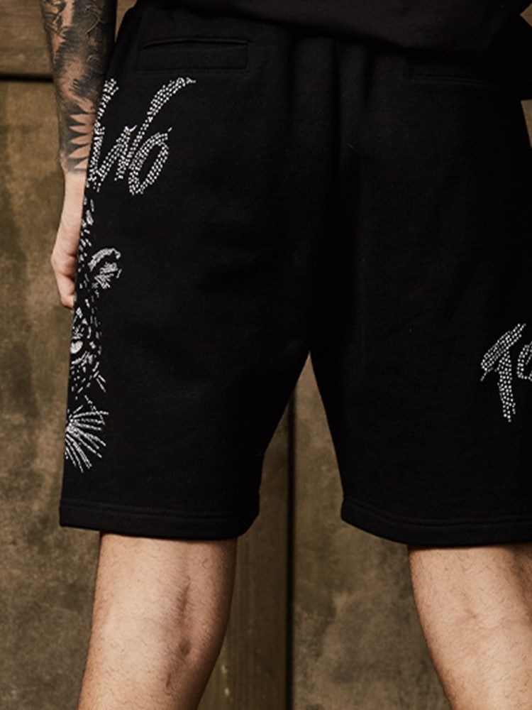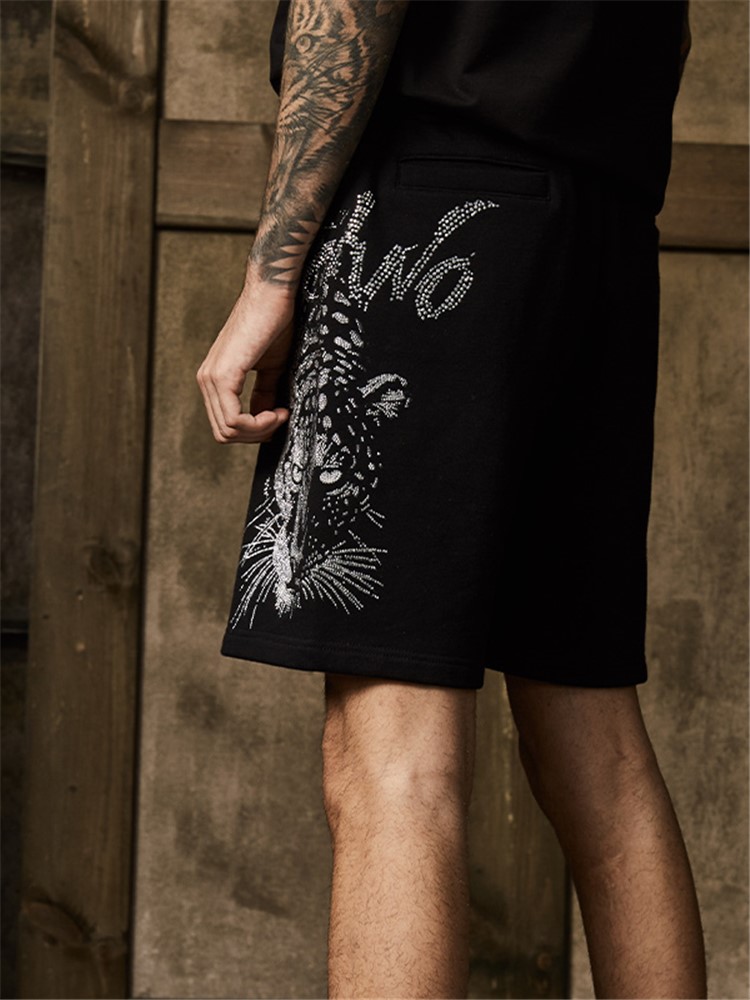 你与潮人之间只差了一件动物t,短裤版型,修饰腿部线条。