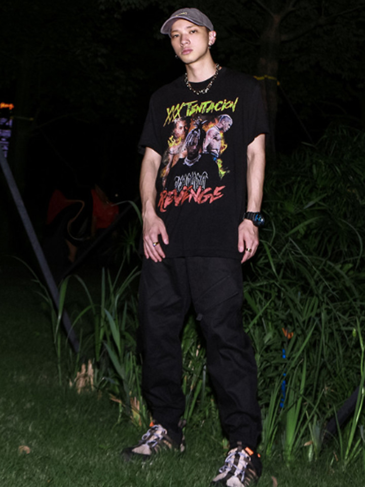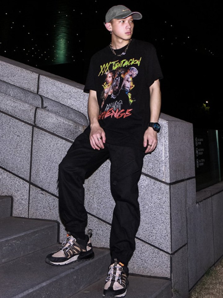 嘻哈说唱风格的短袖T恤个性潮流,传递出潇洒、不受约束的人生态度;宽松版型,十分清爽透气,显瘦的同时又带着青春流行范儿。