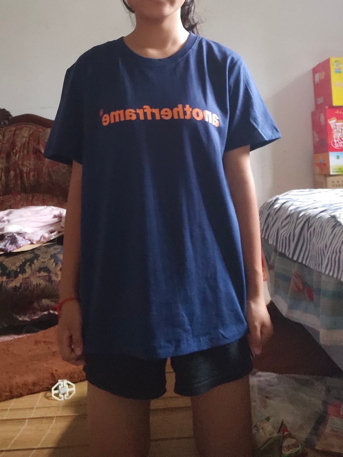 这款t恤是简约的风格,宽松的版型,时尚百搭,胸前的字母印花,很有个性,搭配牛仔裤或者短裤都很好看。