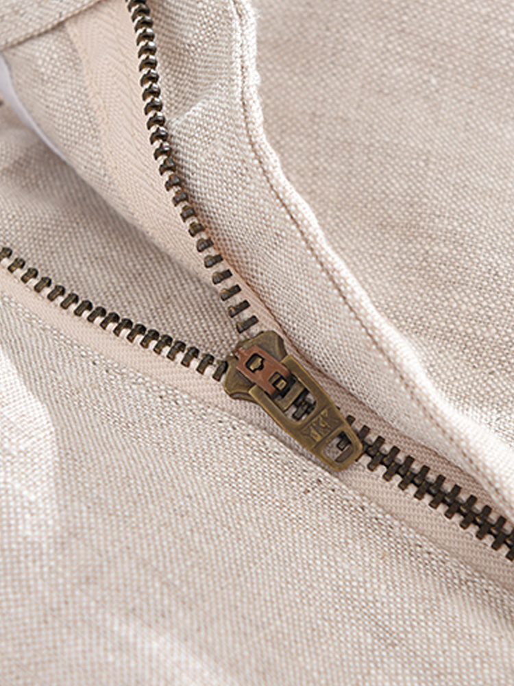 甄选了优质的亚麻材质打造,带来柔软细腻的舒适手感,上身透气表现出色,结合薄款的设计,不会有闷热不适感。而两侧的口袋设计,方便插兜以及收纳随身小物,美观实用。