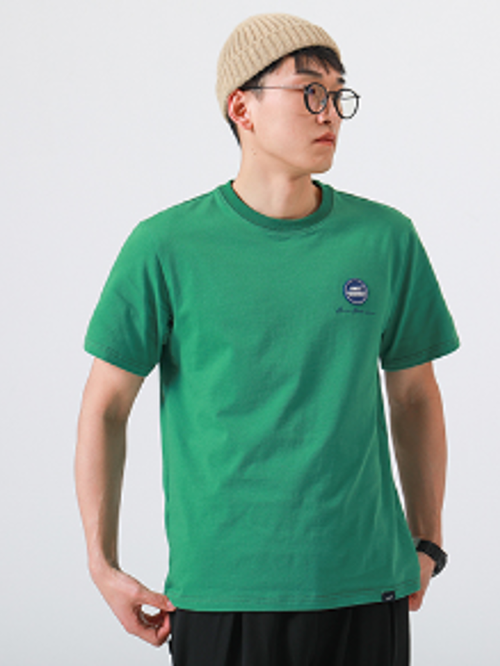夏日必备的纯色T恤,搭配多样,而且不易过时,胸前的撞色装饰,打破纯色的单调,丰富视觉美感。