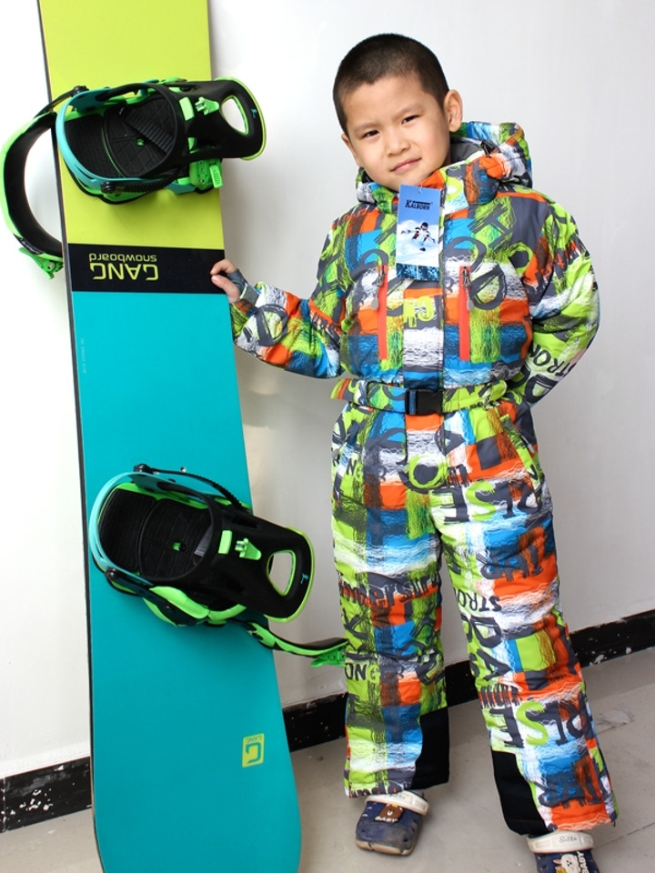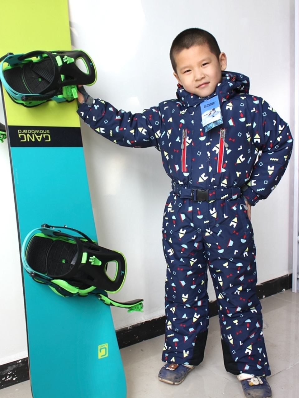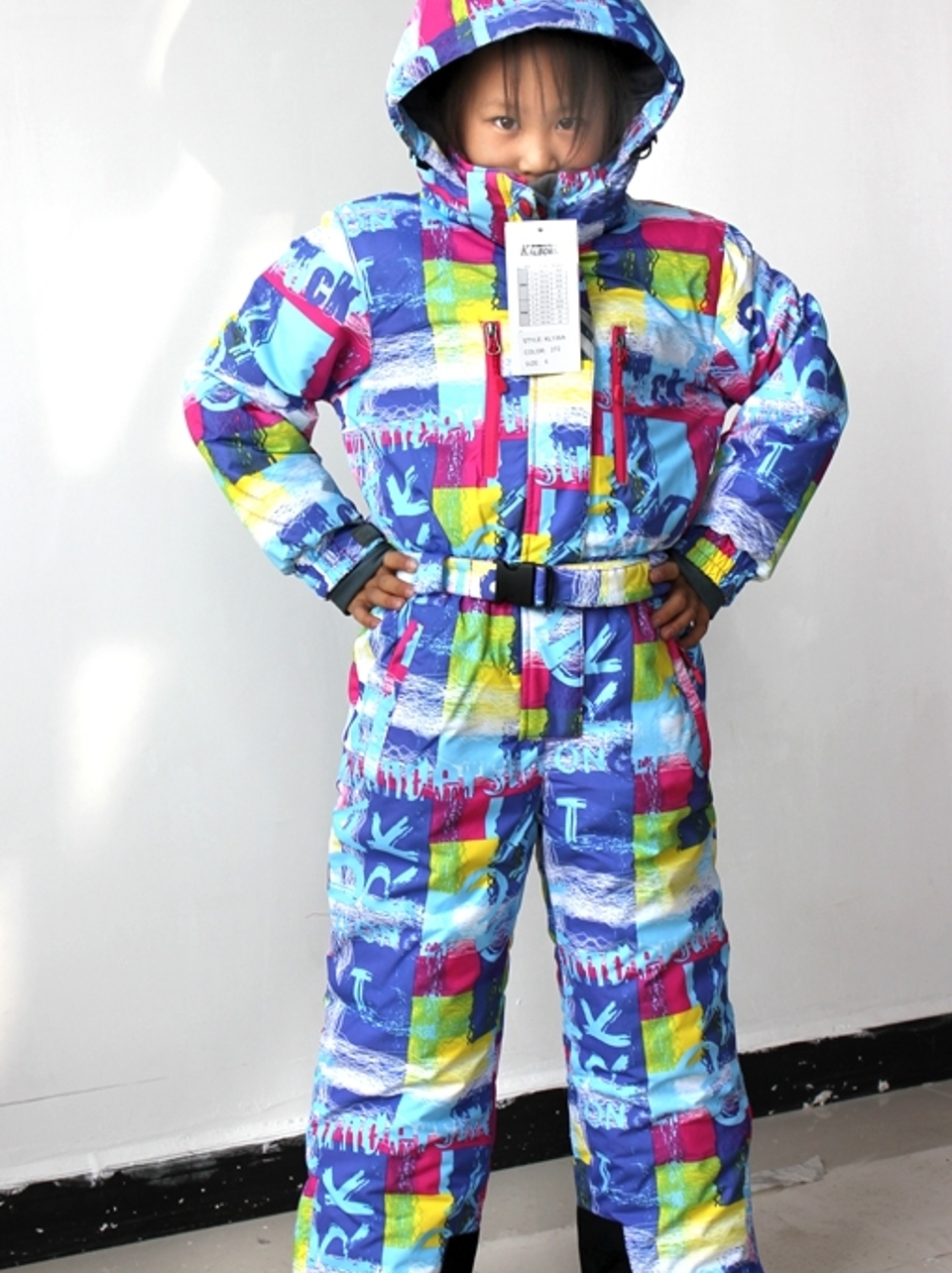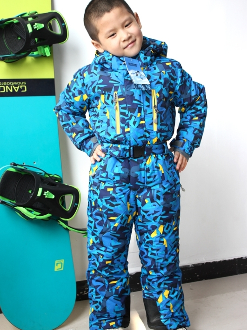 儿童防水连体滑雪服,帽子可分离,根据自己需要自由调节,很方便