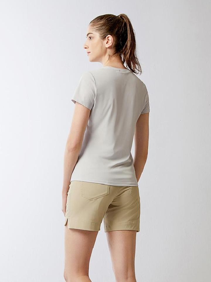 简约的高腰设计,搭配上修身的版型,上身显瘦又显高。