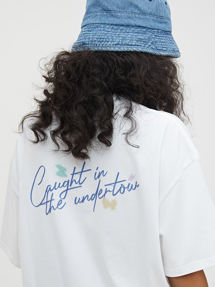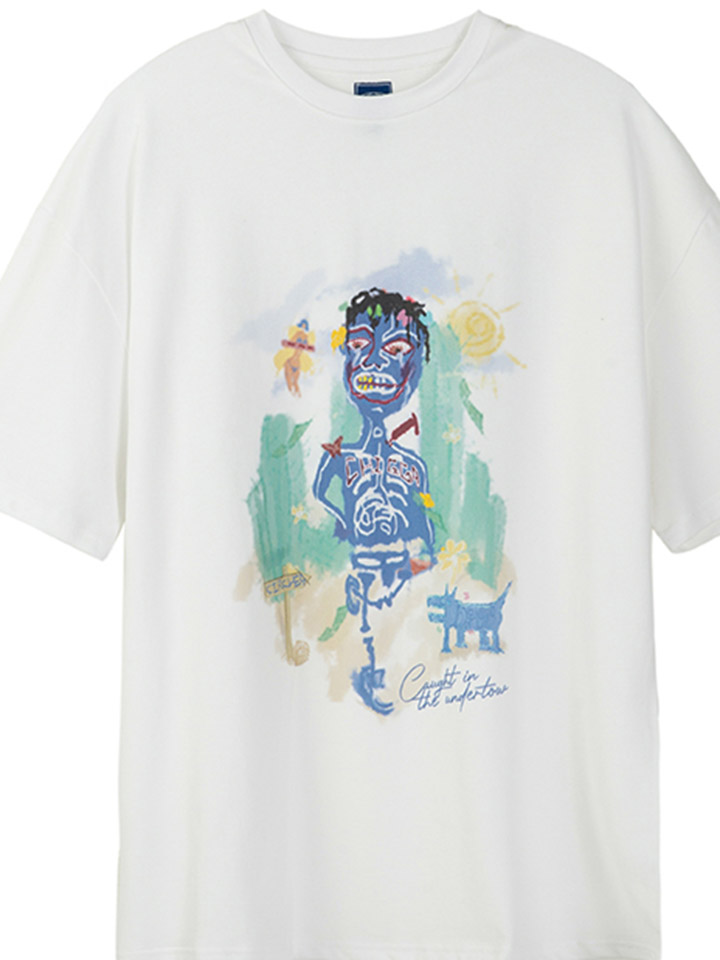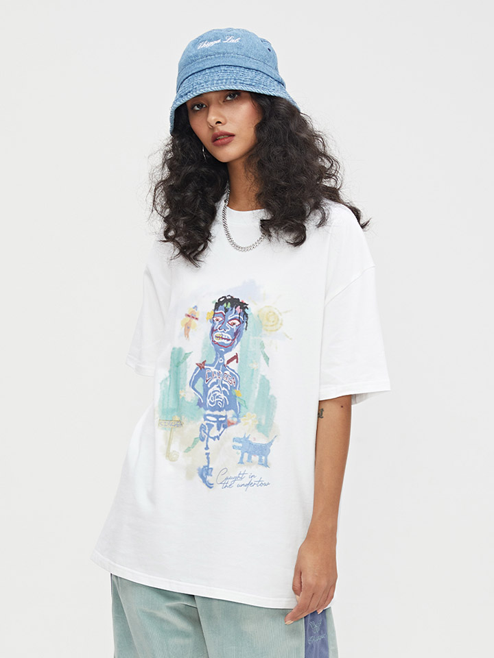 微阔的直筒休闲款T恤,采取饱满的小圆领设计,散发着活泼的调性。纯净的白底色,保持清新的气息。运用涂鸦式的印花图像,营造恶搞的效果,进而打造减龄的青春流行风格。