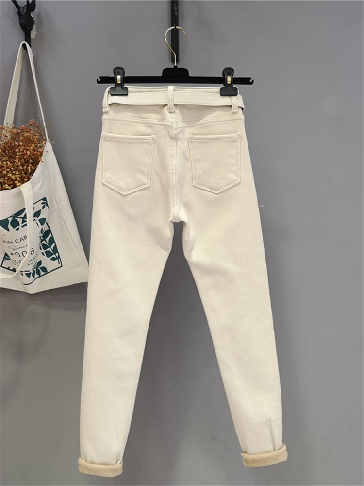 这款牛仔裤的设计很有特色,高腰的版型,很好的修饰了身材比例,显瘦效果很棒,搭配一件T恤,就能轻松穿出时尚感。
