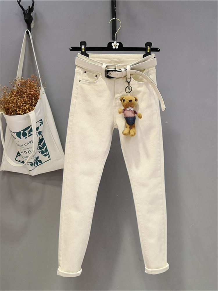 高腰设计,拉长身材比例。高腰牛仔裤,显瘦显腿长。直筒裤型,修饰腿部线条。