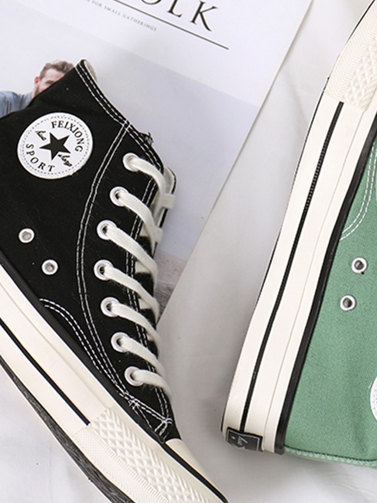 帆布鞋,采用帆布面料,柔软舒适,透气吸汗,经典的高帮设计,穿着舒适,时尚百搭。