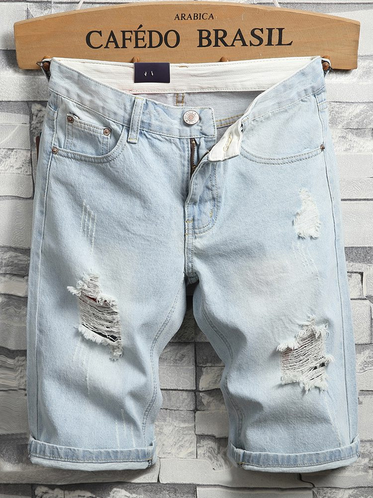 五分宽松的版型设计,穿着舒适,能够轻松修饰腿部线条比例,满足更多身型的人穿着。而破洞的元素,增添了裤身的视觉亮点,时尚美观。