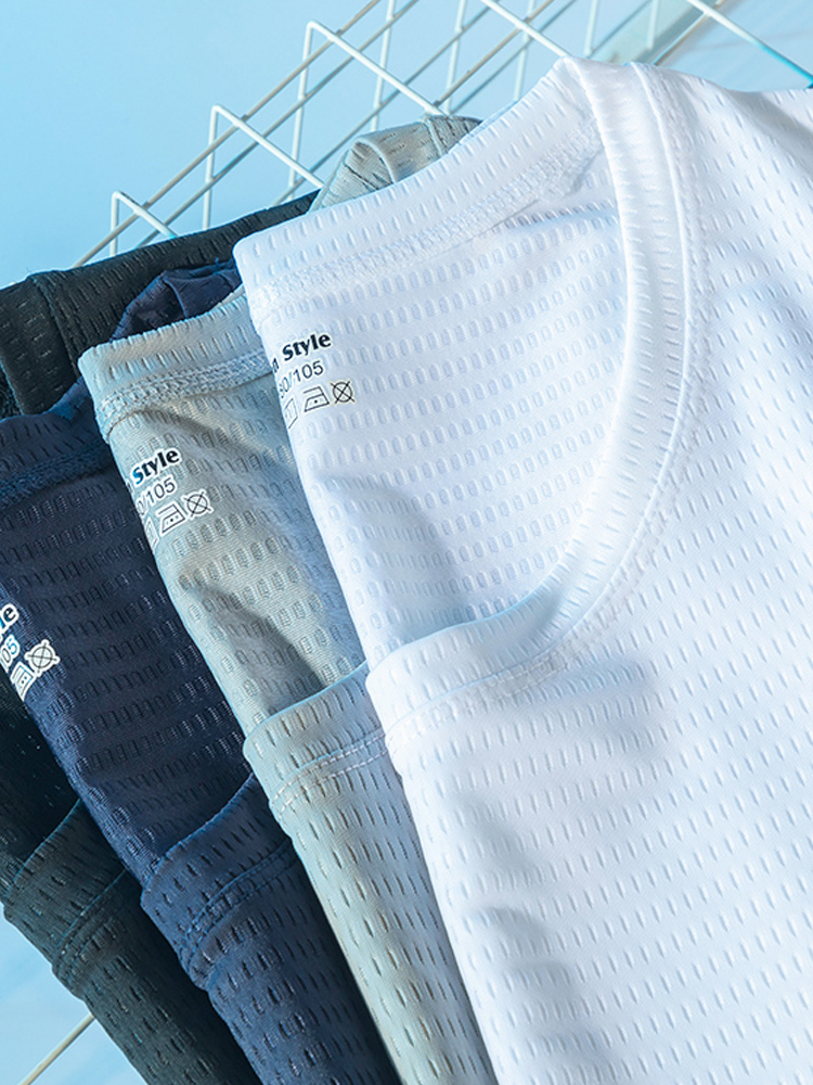 弹力冰丝面料,光滑柔软, 具有良好的延伸性和弹性, 清凉且不怕闷热感。