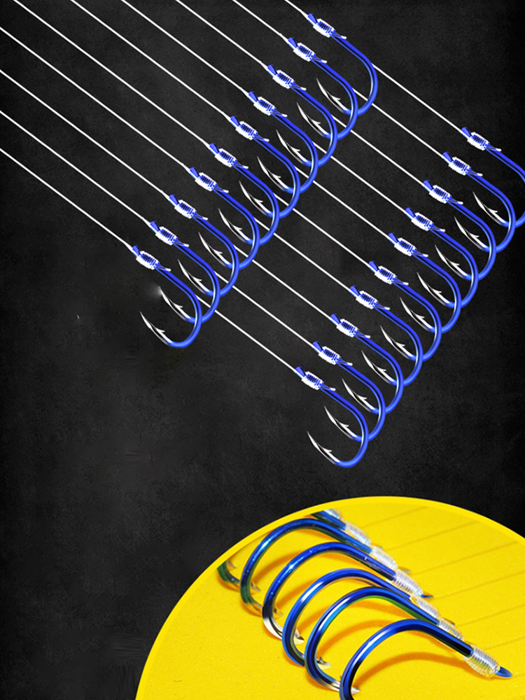 各种钩型,适合钓各类鱼群,构尖锋利且内弯,不用跑鱼。鱼线越拉越紧,不易脱钩断线,鱼线柔软有弹性,拉力强大!合理的搭配,轻松解决搭配难题,让你钓鱼更轻松!素材经过严格筛选,高硬度刚度,强韧。伊势尼钩形,H高碳,钩尖开槽,穿透力强,钩柄钩尖加槽,防切线更稳定。上鱼率快,一触即中!