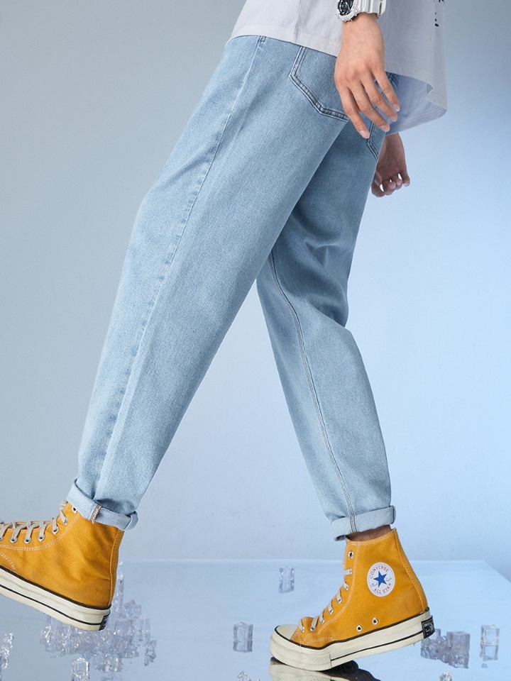 魅力又带着俏皮感的牛仔裤,穿搭造型感上面,上半身搭配经典的宽松卫衣,再穿一双休闲简约的帆布鞋,整体青春活力,行走起来释放出独特姿态感。